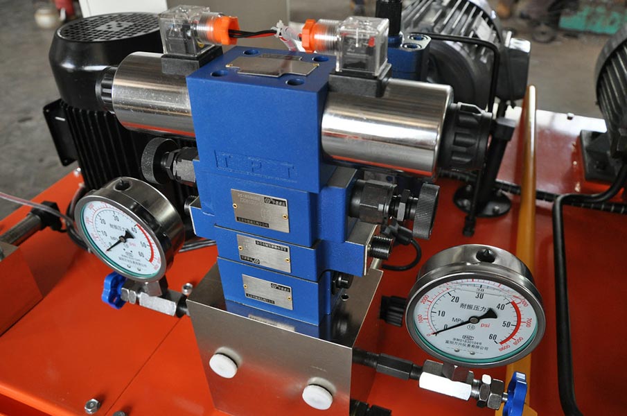 加載油缸控制部分,由多個(gè)溢流閥及單向閥組成